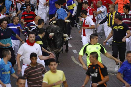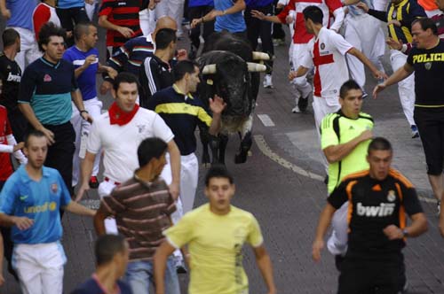 Encierro del 28 de agosto de 2012 Imágenes del encierro del 28 de agosto de 2012 Ir a la página Anterior Siguiente Momento en que los corredores enfilan el tunel de las plaza de toros 'La Tercera Un momento de una carrera en el tramo de la c/ Real Vista de un momento de la carerra con corredores ante astas Un momento de la carrera en el tramo de la c/Real acercándose a c/ Estafeta Un corredor en el momento de finalizar la carrera