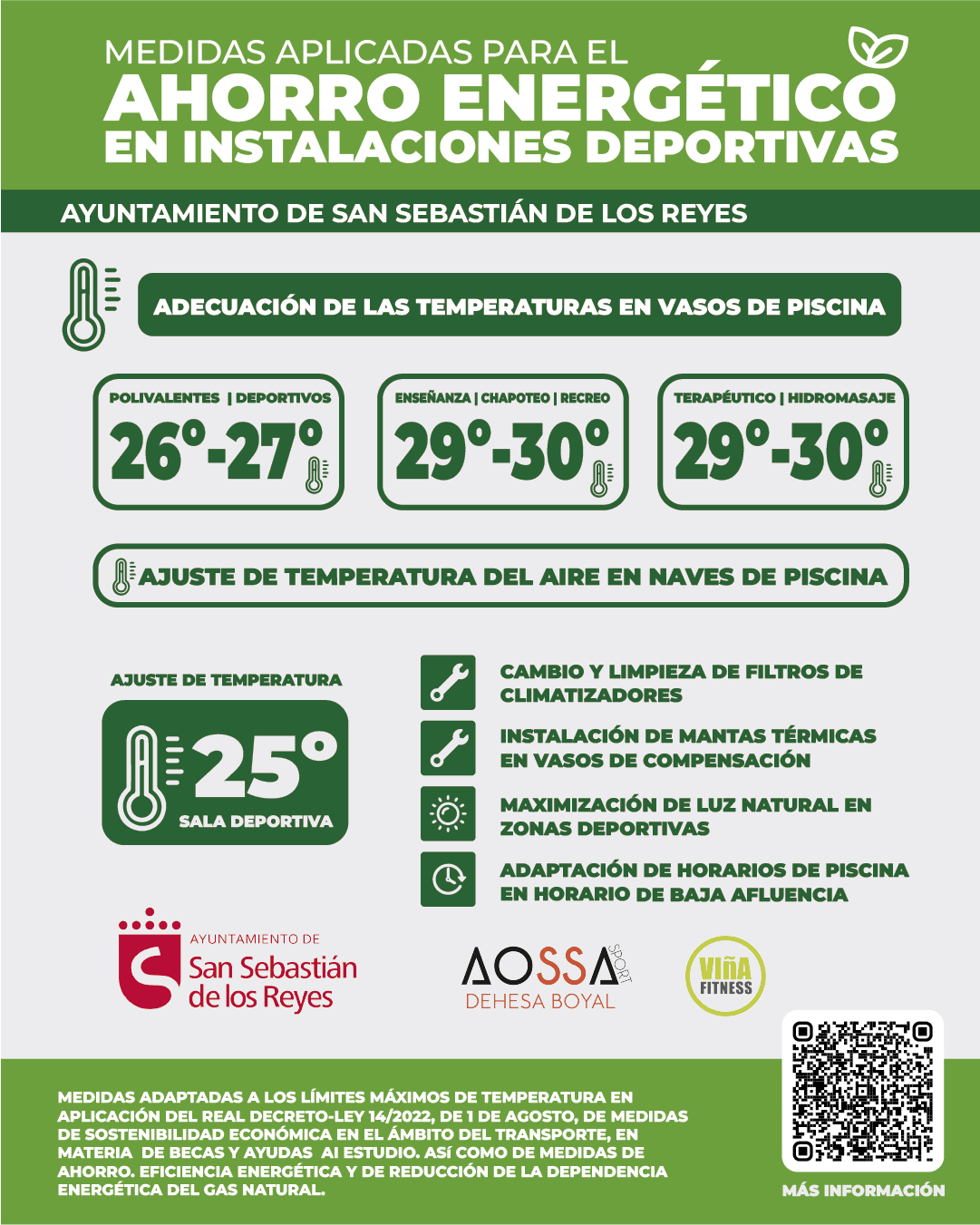 Con este plan de sostenibilidad energética, el Ayuntamiento de San Sebastián de los Reyes, pretende establecer un análisis objetivo de la situación, y tomar conciencia de que con pequeñas medidas que no afectan gravemente al confort de los usuarios, se puede amortiguar el impacto del excesivo gasto energético, contribuir con la sostenibilidad ambiental y económica, y mantener los servicios deportivos en activo.