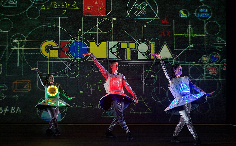 Geometría es un espectáculo de danza con increíbles proyecciones en 3D que toman como punto de partida una de las ciencias más antiguas de la humanidad: la geometría. Un círculo, un cuadrado y un triángulo son tres figuras destacadas de este fascinante montaje que combina música, imagen y movimiento: danza contemporánea, acrobacias y danza urbana.