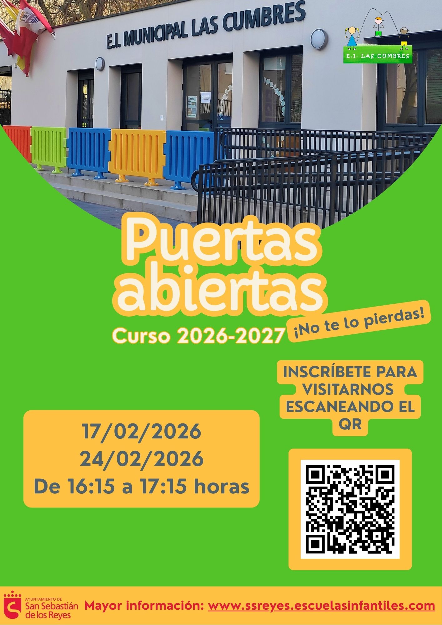 Ya tenemos las fechas de las jornadas de puestas abiertas para vistar nuestra escuela de cara al proceso de Admisión para el curso 2026-27.
