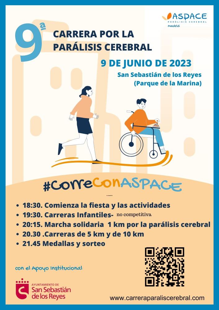ASPACE Madrid organizan la “Carrera por la Parálisis Cerebral 2023” con salida y llegada al Parque Municipal de La Marina de San Sebastián de los Reyes.