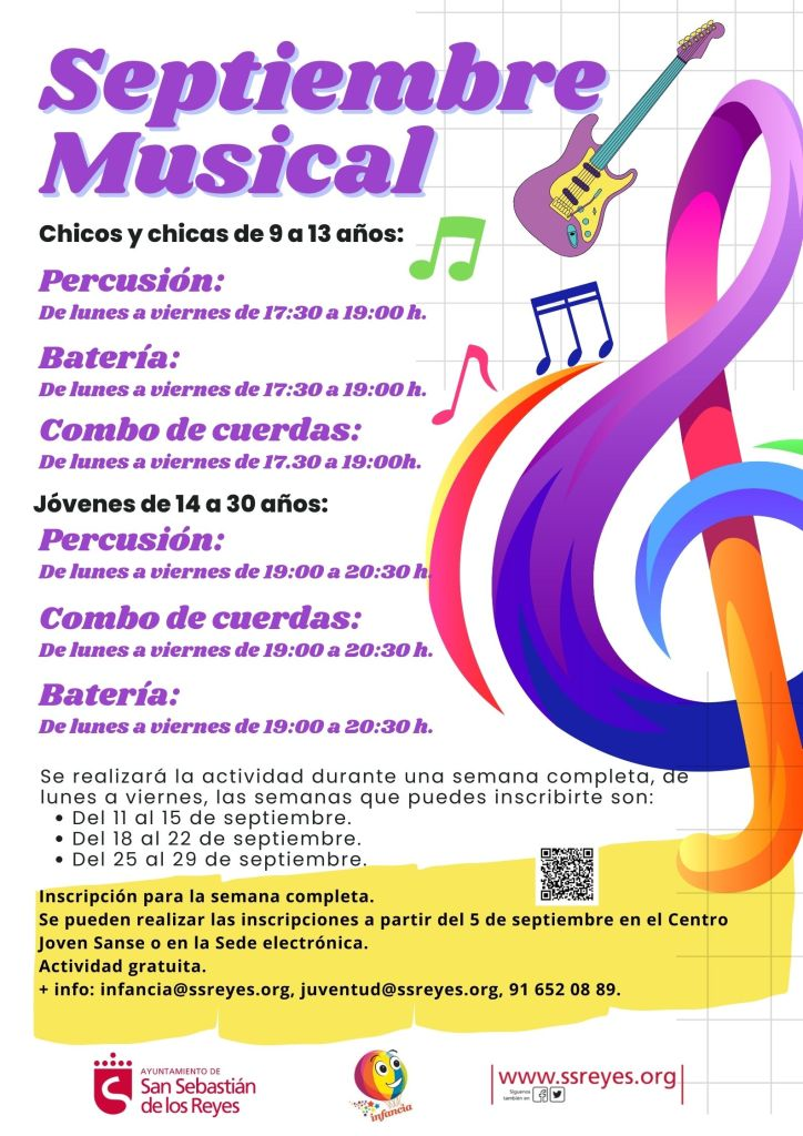“Septiembre musical” brinda la oportunidad de tener un primer contacto con la música, a través de la práctica y el conocimiento de diferentes instrumentos musicales. Tamara Barrientos, concejal de Infancia y Juventud declara que “consideramos importantísimo fomentar la cultura musical en los más jóvenes, como una herramienta que ayude a su desarrollo cognitivo y social en las diferentes etapas de la infancia, la adolescencia y la juventud”.