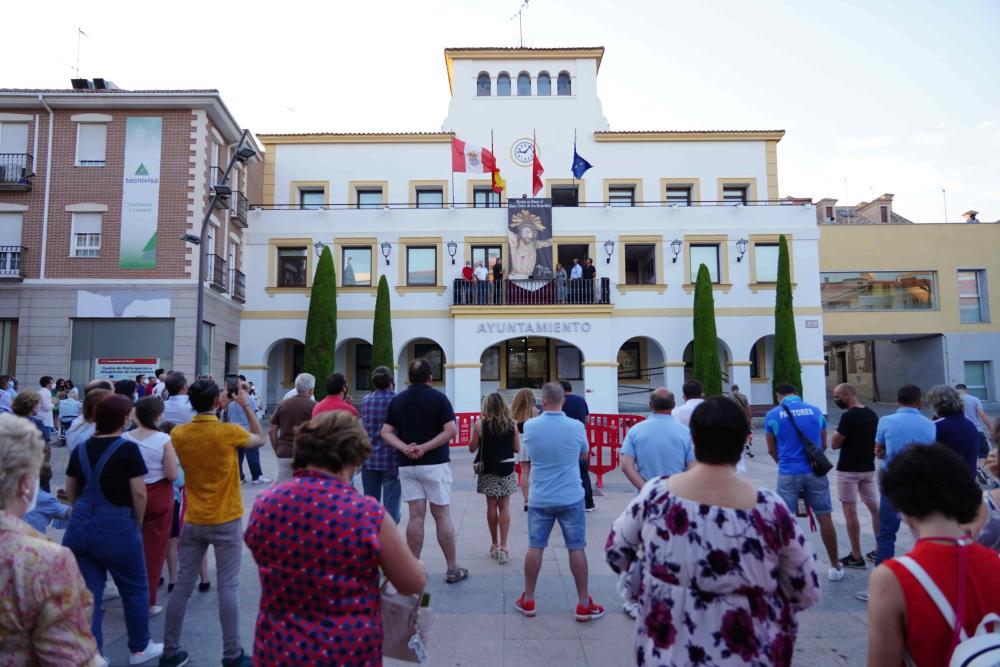 El Cristo de los Remedios en el balcón del Ayuntamiento.