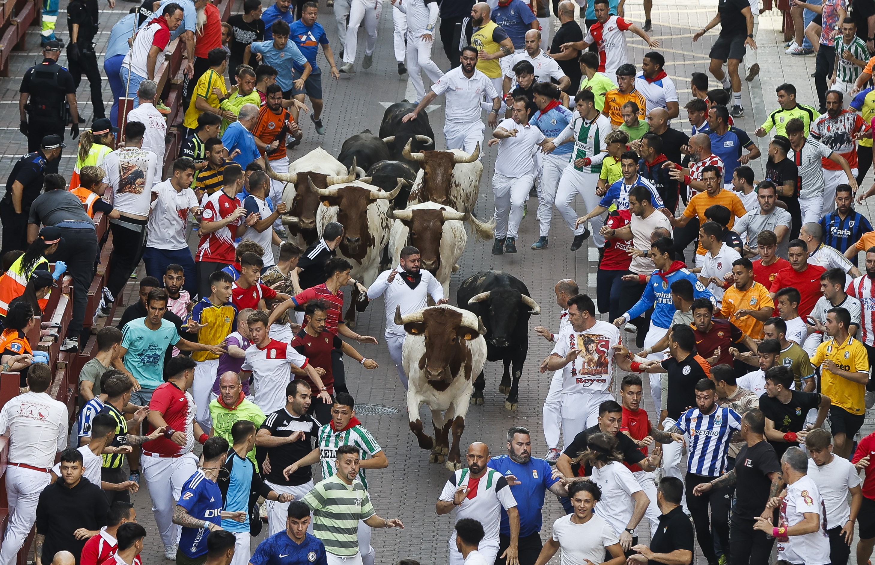 El encierro, con toros de la ganadería Zalduendo se ha completado en 1 minuto y 43 segundos, con un herido por asta y ocho por caídas.